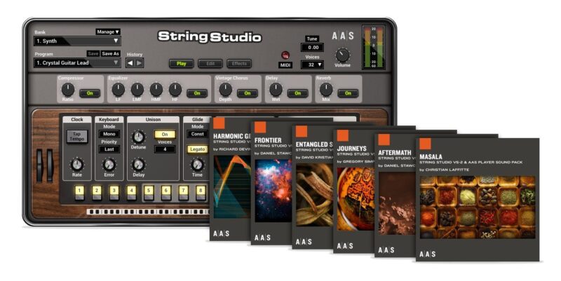 String Studio VS-3 is a string modeling synthesizer plug-in that swaps the traditional oscillator sound source for a string.