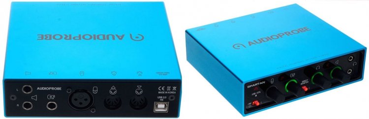 The Audioprobe Spartan A USB Audio Interface Sky Blue is a USB audio/MIDI interface with two inputs and outputs, with a signal to noise ratio of more than 110dBA, 20Hz to 20kHz. The Spartan A USB Audio / MIDI interface, with 2 inputs & outputs and more than 110dBA dynamic range, is the little brother of the Spartan CUE 110 with similar outstanding measured values