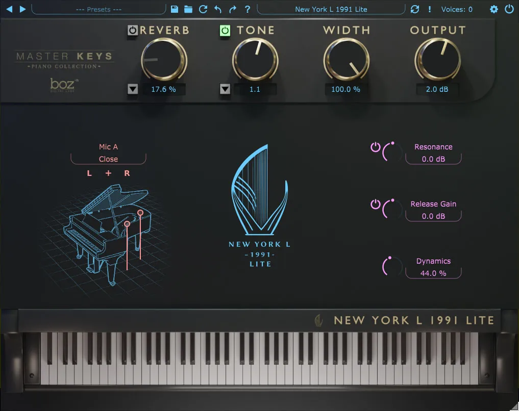 The New York L 1991 is sampled from a 5’10” Steinway Model L built in 1991 (Serial Number 519373), purchased 2 years ago from a Steinway showroom in Seattle, WA. It has been incredibly well maintained and restored to be like new when it was purchased. It was sampled in a large, live living room with 5 stereo microphone positions, carefully placed to get the most out of the piano and the room.