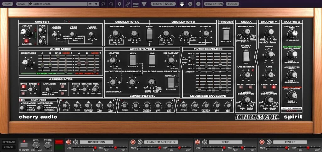 Crumar Spirit by Cherry Audio is a meticulously crafted virtual recreation that captures the unique and captivating features of the exceptional analog monosynth from 1983, originally designed by some of the most legendary figures in the synth industry. In collaboration with Crumar, Cherry Audio has reopened a time capsule to revive this Italian cult classic and thoughtfully elevated it with their signature style.