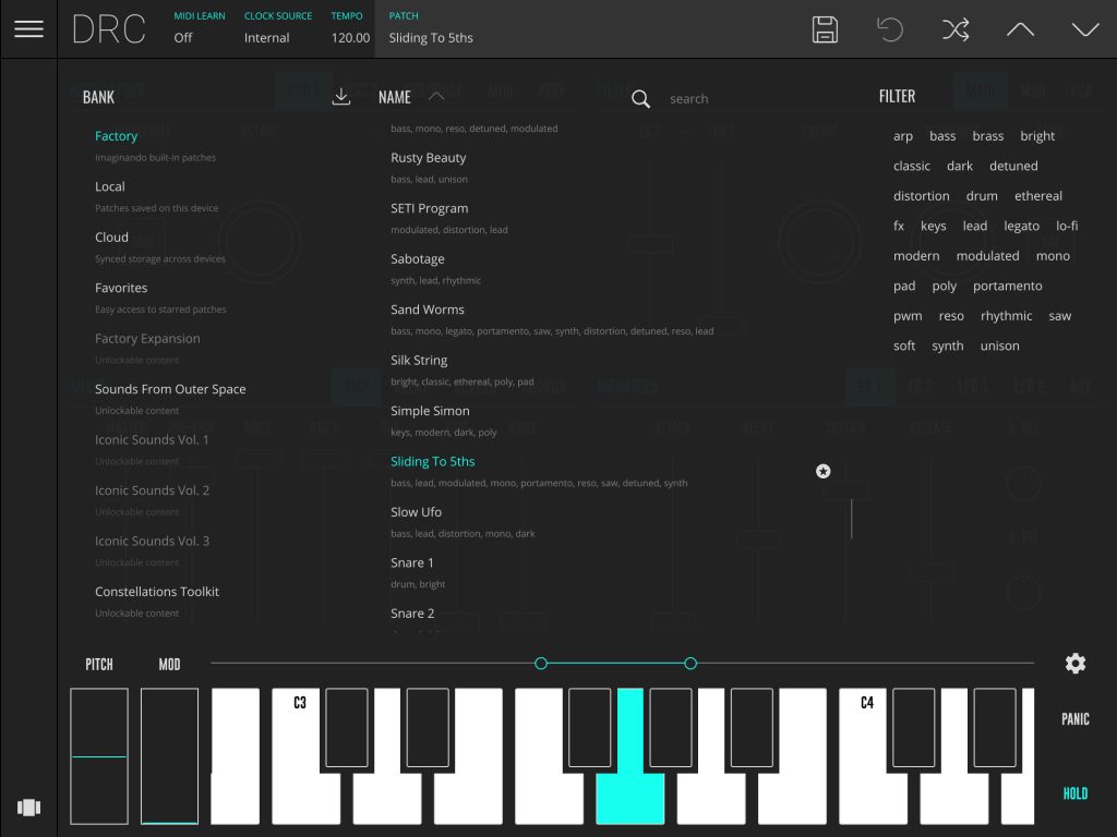 – Sound design, anytime: With cloud sync functionality, you can seamlessly shift your workflow between devices, for sound design on the go. Take your creations outside of the studio, or start a new sound on your mobile then move it to your DAW.