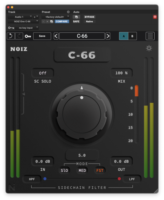 The C-66 delivers the warmth, punch, and musicality of classic analog compression inspired by the BB F66, providing smooth and musical glue.