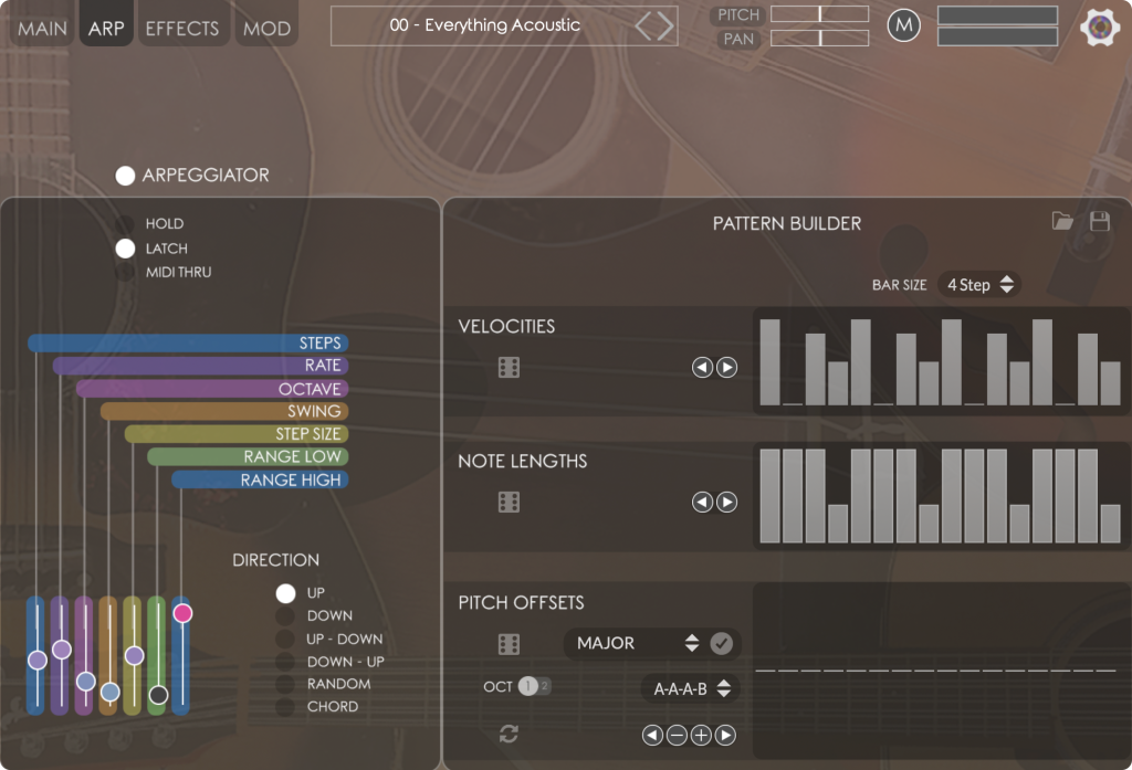 Fully customizable Arpeggiator with Hold, Latch, and Midi Thru modes