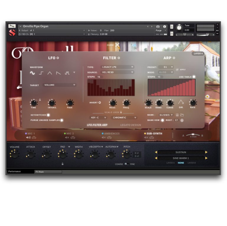We captured several of our favorite sustain and staccato articulations in two microphone positions, as well as chimes, zymbelstern, blower, and pedal noises for ultimate realism. We’ve also included tons of custom FX patches and sound-designed ambient synth pads created from the source to make this library extraordinarily playable and versatile. Whether you’re looking to create a massive video game sound, bold synth bass tone or play straight from the hymnal, Orrville’s got the pipes to do it!