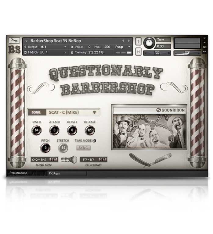 Questionably Barbershop is a simple 4-piece male vocal ensemble, crafted in the style of an old timey Barbershop Quartet. Featuring the humble vocal talents of our own Mike Peaslee, Gregg Stephens and Spencer Nunamaker, this library offers basic chromatic sustains and staccato articulations, improvised scat and bebop phrases. From a deep booming bass to a soaring high tenor falsetto, Questionably Barbershop gives you easy 4-part harmony in a box.