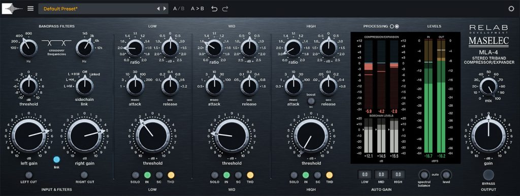 The Maselec MLA-4 by Relab is a software recreation of the renowned MLA-4 Triband Compressor/Expander, offering high-end dynamic control for mixing, mastering, and stem processing. Developed in collaboration with Leif Mases, this plugin provides precise multiband compression and expansion, enabling users to control low-end dynamics, enhance midrange clarity, and restore lost transients without introducing unwanted artifacts. It features advanced controls such as per-band THD (total harmonic distortion) for selective warmth, Auto Spectral Balance to preserve tonal integrity, and smart sidechain linking for seamless dynamic adjustments. The MLA-4 combines analog warmth with modern digital flexibility, offering professionals an accessible yet powerful tool at a fraction of the cost of the original hardware.