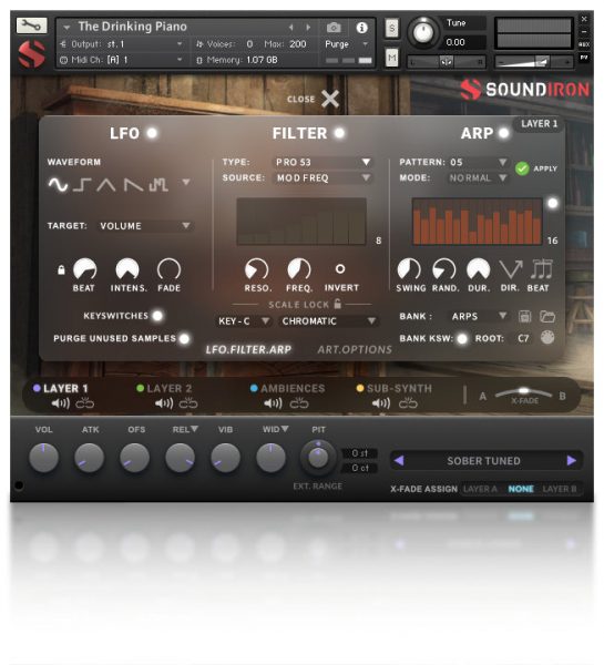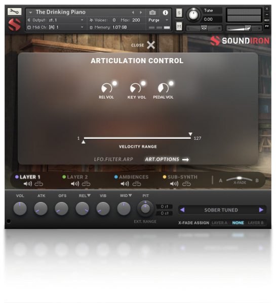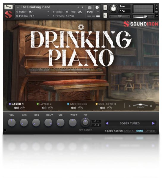 Tuned & Untuned Piano in Sober and Drunk modes, Bench creaks, Plucks, Pedal noises, Releases, SFX