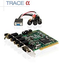 The TRACE ALPHA provides one stereo analog input/output and one stereo digital input/output with up to 192 kHz as well as one alternative internal digital CD-ROM input. The compact PCI card includes also three MIDI-Outputs and one MIDI input with 16 channels each. The main characteristic of the TRACE series is the newly developed high speed hardware architecture, which guarantees data transfers with ultra low latencies and practically without CPU load. The analog inputs and outputs provide balanced connectors and the elaborate analog converter technology ensures superb audio values with maximum dynamic – signal to noise ratio up to 113 dB(A) with a level of up to 18 dBu.