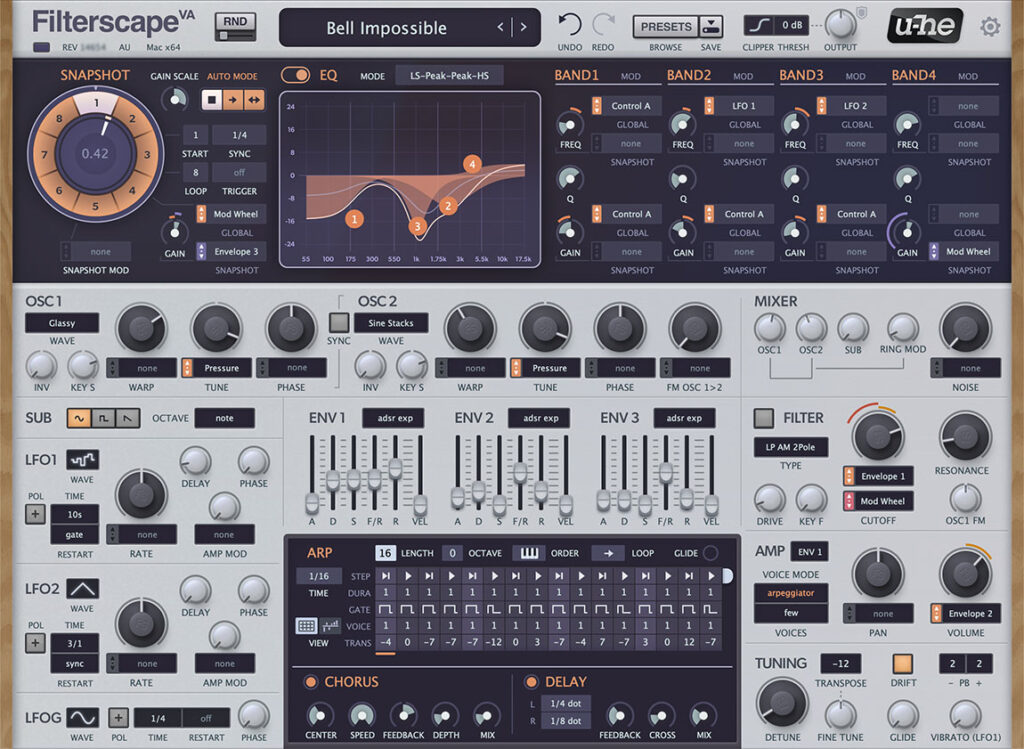 Originally published in 2004, Filterscape was u-he’s very first cross-platform, multi-format plugin. An important milestone for u-he as a brand, it quickly became a staple in the arsenal of many musicians. Now upgraded with modern technology and ready for tomorrow’s tasks, we’re once again showing our commitment to maintaining our product line. Filterscape may have been overlooked in recent years, but no longer!