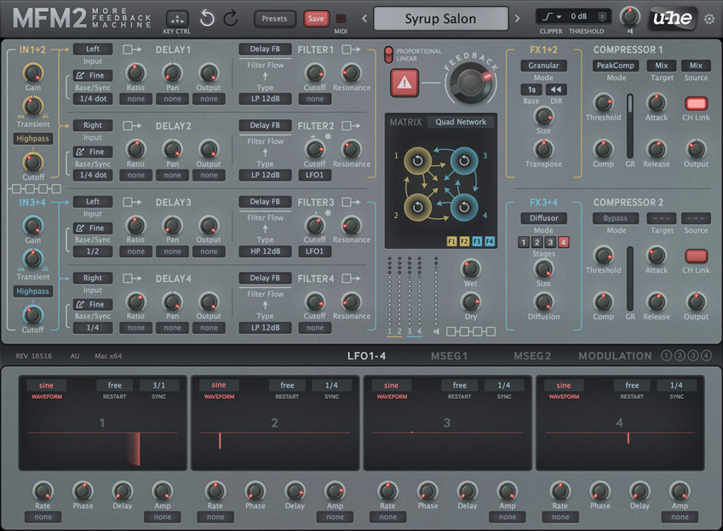 MFM2 is our over-the-top digital delay plug-in. You can create anything from subtle textured echos to huge spacey reverbs, from wild tonal steps on a pad to rhythmic deconstruction of a drum track. As a regular delay MFM2 already offers as much control and inspiration as possible, while the advanced features in version 2.5 open up wider horizons. More feedback, more control, more inspiration!