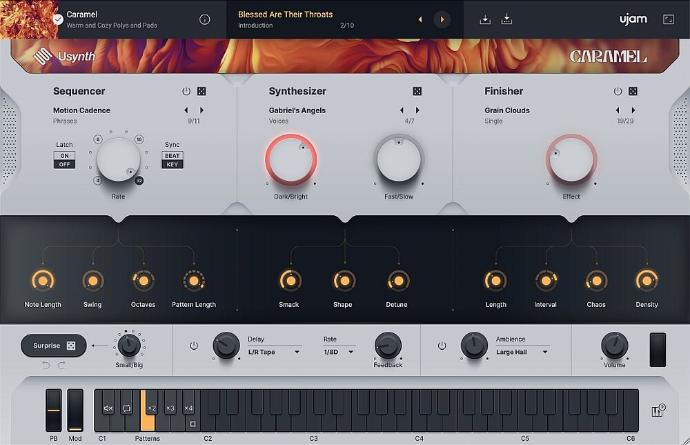 Usynth Caramel comes with all the rich, lush pad sounds you could ever want. Creating dreamy ambient soundscapes is easy, with the heavy lifting done behind the scenes (wavetable selection, unison, effects and far more), meaning less time spent on sound design and more time spent finishing songs!