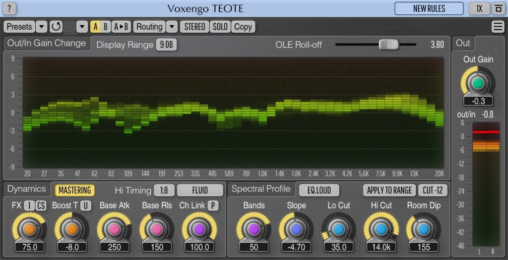 TEOTE, is an automatic spectral balancer plug-in for professional music production applications, available in AAX, AudioUnit, VST, and VST3 plug-in formats, for macOS and Windows computers.