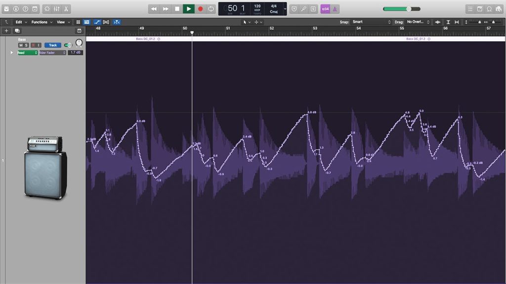 Even slight level variations can cause bass to drop out of a mix. Bass Rider monitors your bass track, and raises or lowers its level automatically to keep your bass at a specified target level.