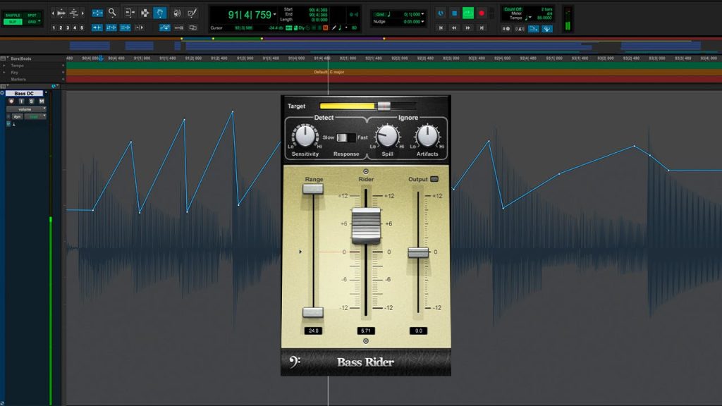Some bass players lack a pro’s precise, steady “touch” that gives consistent levels. Bass Rider compensates by evening out individual note levels. This balances the overall bass sound, and helps the bass sit better in a mix.